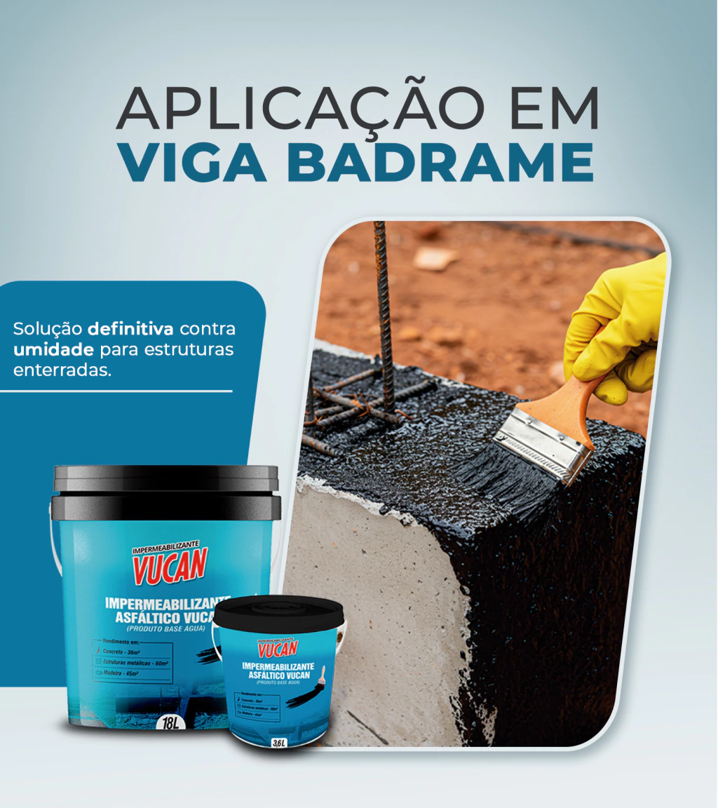 O Impermeabilizante Asfáltico Vucan é um adesivo asfáltico de elevada resistência à base de elementos químicos que forma uma camada resistente à água. É o produto ideal para proteger estruturas de concreto ou qualquer estrutura de alvenaria que esteja em contato com o solo e que porventura possam sofrer pressão de água ou outros meios desfavoráveis. É recomendado também para estruturas de metal ou de madeira enterradas. Depois de devidamente curado, o Impermeabilizante Asfáltico Vucan é inodoro e insípido e não contamina água e alimentos.